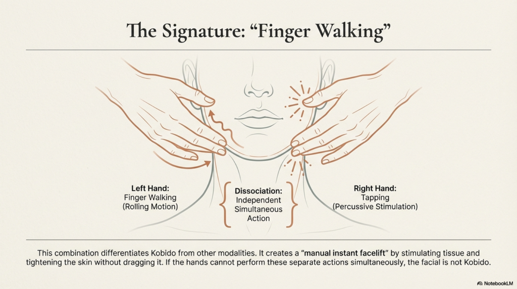 In a clinical study of the Kobido protocol, measurements taken pre- and post-session showed an average 3.9mm cranial shift of the malar soft tissue. This is not swelling; it is the geometric result of shortening the effective length of the SMAS through vertical recruitment. For practitioners in Online Medical Courses, reproducing this shift is the benchmark of competency.